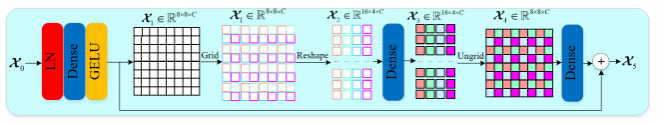 2. 镂空扫描的全局感知策略:我们利用全局感知策略对处理token进行镂空式分组,以MLP网络实现全局信息融合,然后将处理张量复原到原始张量空间位置,以此进一步提高了Swin Transformer网络的全局感受野;
