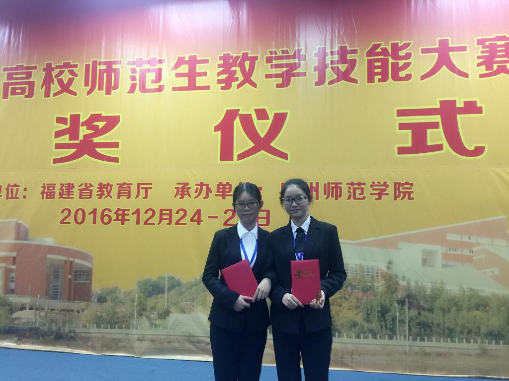 12月24-25日,由福建省教育厅主办的第三届福建省高校师范生教学技能大赛在泉州师范学院举办。全省20所培养师范生院校的171名选手参加了此次比赛。mx动漫 学生吴雅玲和林婧颖同学参加物理组比赛,经过激烈角逐,最终凭借优异的表现分别获得了物理组一等奖、二等奖的好成绩。