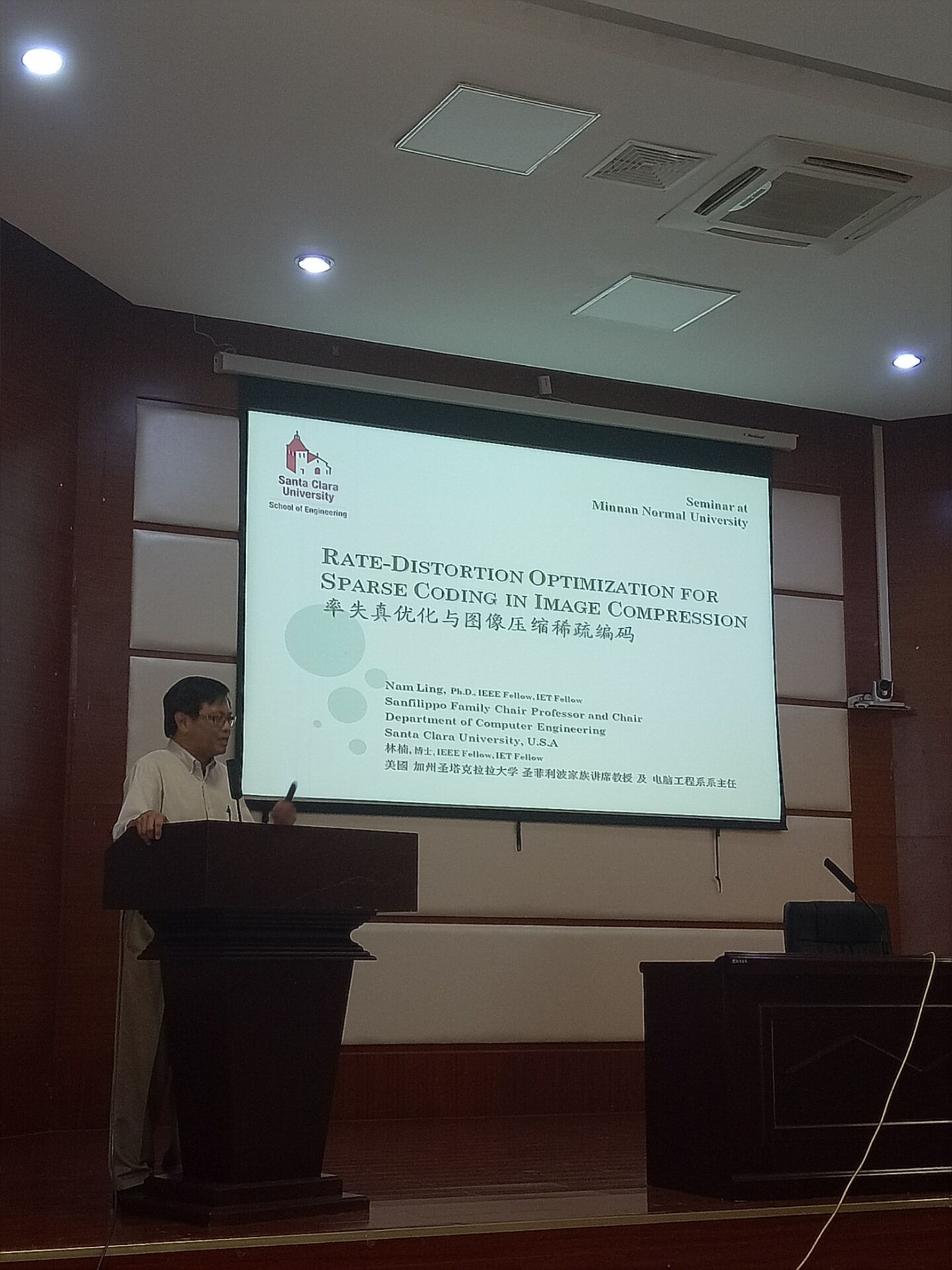 系系主任 、兰州大学兼职教授林楠给大家讲授“率失真优化与图像压缩稀疏编码”的相关课题讲座,林教授介绍了自己的成长经历,与大家分享自己人生的经验启发。随后他从三维设备普及到三维视频相关标准专家组以及新一代视频编码H.266的相关介绍,为同学们诠释出三维视频技术的未来发展,并向在座各位展示出视频编码H.266的方法和相关技术。最后林教授还与在场师生进行互动,回答了多个同学的提问,让大家更加全面认识视频编码。