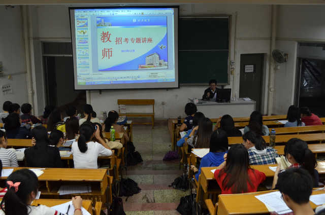 首先,蔡老师先对现今的教师就业情势发表了自己的看法,他强调,要及时全面地掌握招聘信息,并结合自身条件进行考虑,最好能实地考察,对招考地点有一定的认知。接着蔡老师简单概括了考试形式、难度比例以及题型分析。在分析考试难点时,他鼓励学生能不畏重压,走出误区,遵从考试复习基本指导方针,及早总结复习方法,把握招考的考核关键,以合格的教师身份出入社会。会上,蔡老师的演讲通俗易懂,大家受益颇丰。