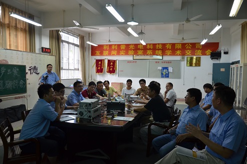 与利利普光电科技有限公司在学院会议室举行“互联网实验室系统学术交流会”,参加交流会的有利利普光电科技有限公司曾炳山副总经理及随行人员、物信学院党委书记、副院长张跃聪研究员,物信学院副院长白炳良副教授,院长助理张华林老师以及实验课教学老师等。