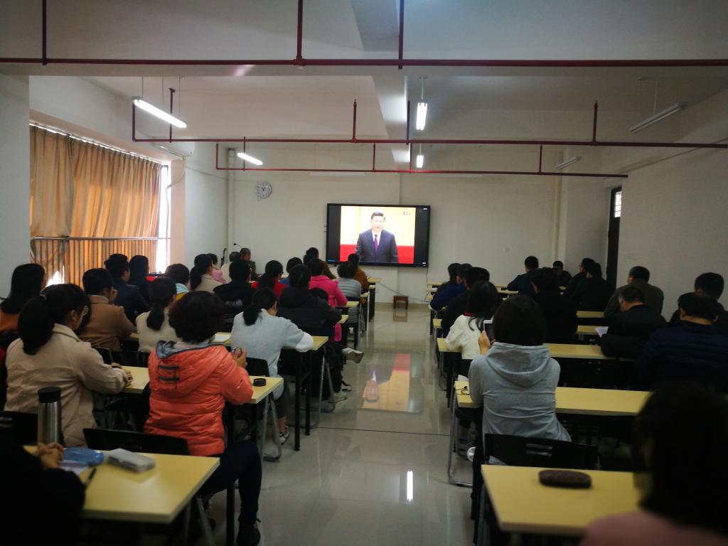 12月18日上午10:00,物信学院全体教师和学生党员在科技楼南区809集中收看了庆祝改革开放40周年大会直播,学院党委主持工作副书记、副院长杨红和一同收看。