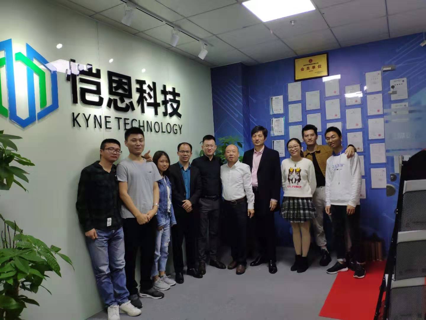 上午,周小方、杨红和一行来到04电本2班校友肖志勇创办的深圳恺恩科技有限公司,实地考察了公司的生产和运营情况。肖志勇校友向考察组一行详细介绍了公司的发展历程,申请的专利、产品的种类和应用领域,并就与母校合作开发光电传感技术、建立学生实习实践基地、深入产学研合作等方面进行了探讨和交流。