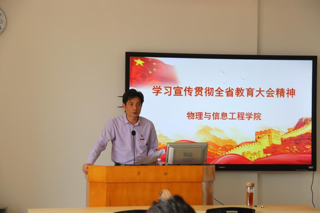 工作实际,提出,要高度重视、强化学习和研讨,认真学习领会贯彻文件精神;加强和改进师资队伍建设和师德师风建设,立德树人,做好课堂思政、课堂育人;积极探索课堂教学改革,加强新技术在教学领域的应用,建设学院良好教风、学风。要掀起学习宣传贯彻教育大会精神的热潮,抓住机遇,为新闽师的教育发展奉献“物信力量”。