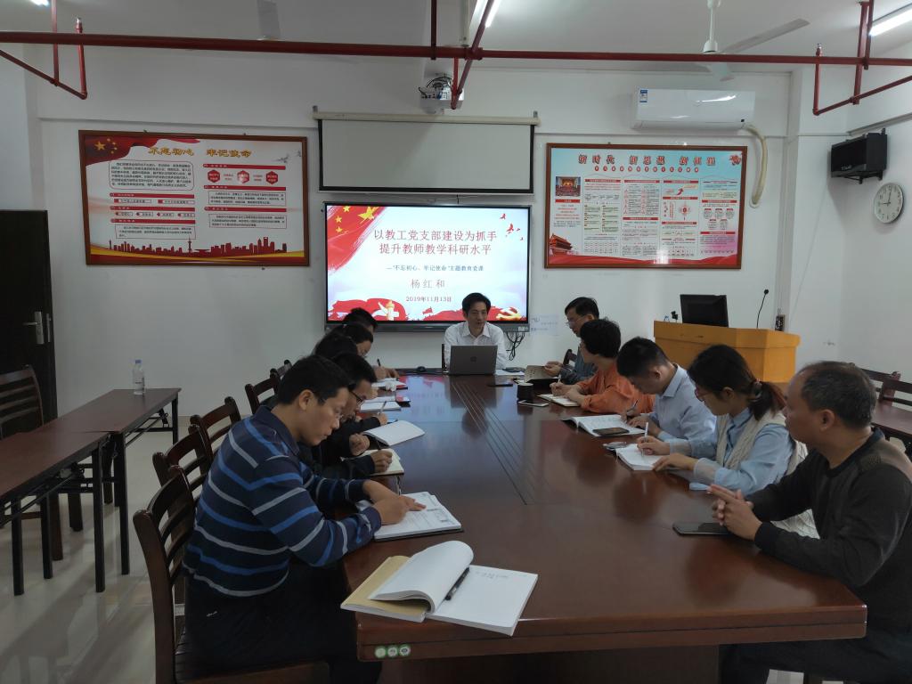 根据学校“不忘初心、牢记使命”主题教育工作部署,11月13日,学院党委主持工作副书记杨红和围绕前期调研情况,为学院党政领导、党委委员和全体党支部书记讲授《以教工党支部建设为抓手、提升教师教学科研水平》主题教育专题党课。