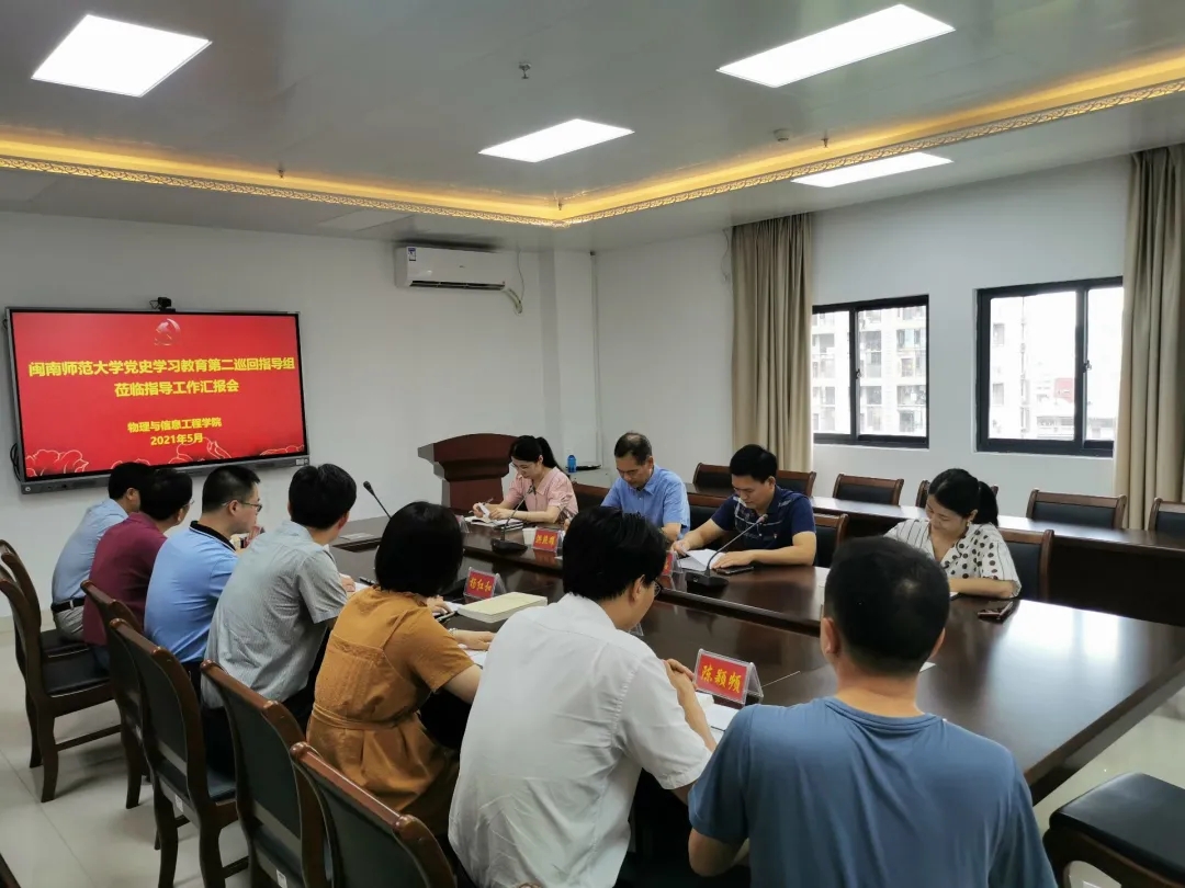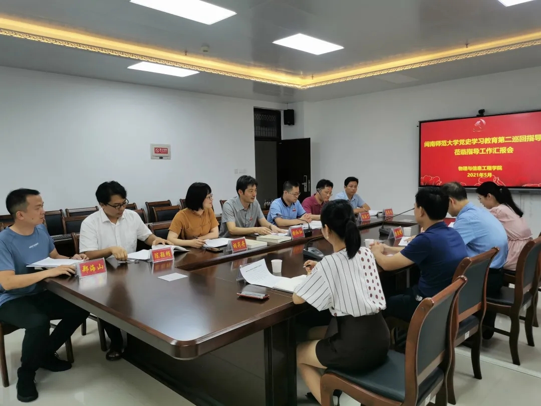 党史学习教育巡回指导组二组组长洪照耀,副组长连恩德及其他成员出席,物信学院全体党委委员参加会议。