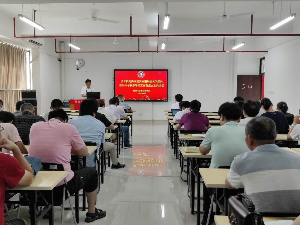 在科技楼召开新学期教职工大会,学习传达习近平总书记在庆祝中国共产党成立100周年大会上的重要讲话精神,学院全体教职工参加会议。
