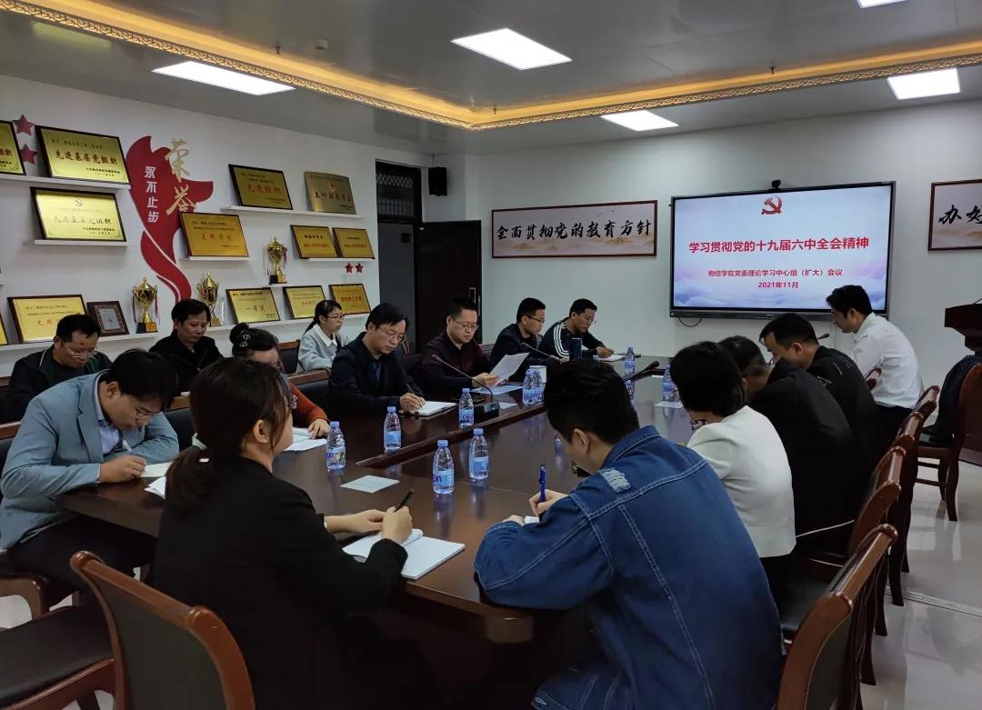 党委在科技楼北907会议室举行学院党委理论学习中心组(扩大)会议,集体学习党的十九届六中全会精神。学院党政领导班子、院长助理、科级干部、各党支部书记参加学习会,会议由学院党委书记杨红和主持。