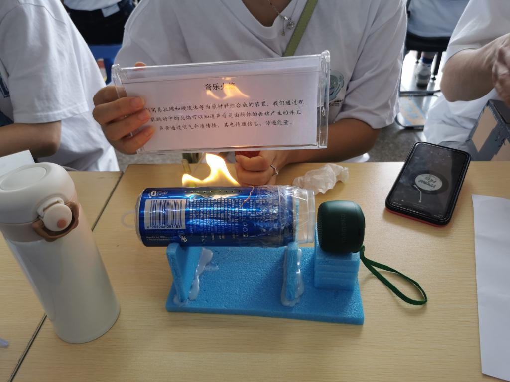本届“物理大观园”以“赋能青春喜迎二十大,创新创造筑梦新征程”为主题,共设立国赛省赛获奖作品展示、学生电子设计优秀作品展示、教具设计优秀作品展示、智能车等智能作品展示、宿舍“变废为宝”作品展示、科普游戏互动、校友创业成果展示及校友交流分享会等几个部分。活动现场,各展区讲解员为大家演示并详细讲述作品原理和意义,其中,“流速之形——‘排箫’庆团”作品以直观清晰的方式为观众讲解空气压强的原理运用;“音乐火焰”秀出婀娜舞姿,形象展现了“声音是由物体振动产生的”这一原理;“循迹智能车”带领大家体验一段科技之旅;“牛仔酷”“航天小火箭”“防疫小助手”等作品,变废为宝,将“生态优先,绿色环保”的发展理念传递给大家。在这场以落实学校“提质增效年”行动为契机的活动中,物信学子凭借扎实的专业基础,运用智慧与思维制作出一份份令人叹为观止的优秀作品,向外界展示专业的魅力,展现科技创新的魅力,用青春的涌动和创造,迎接党的二十大到来。