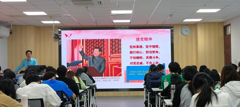 党委书记杨红和在科技楼南809为学院第二十三期入党积极分子培训班全体学员讲授《培根铸魂强党性、奋楫扬帆新时代》专题党课。