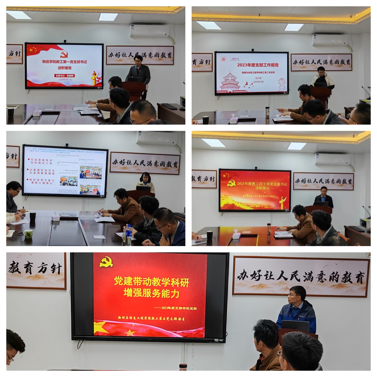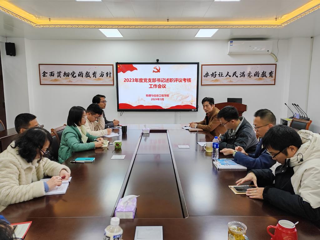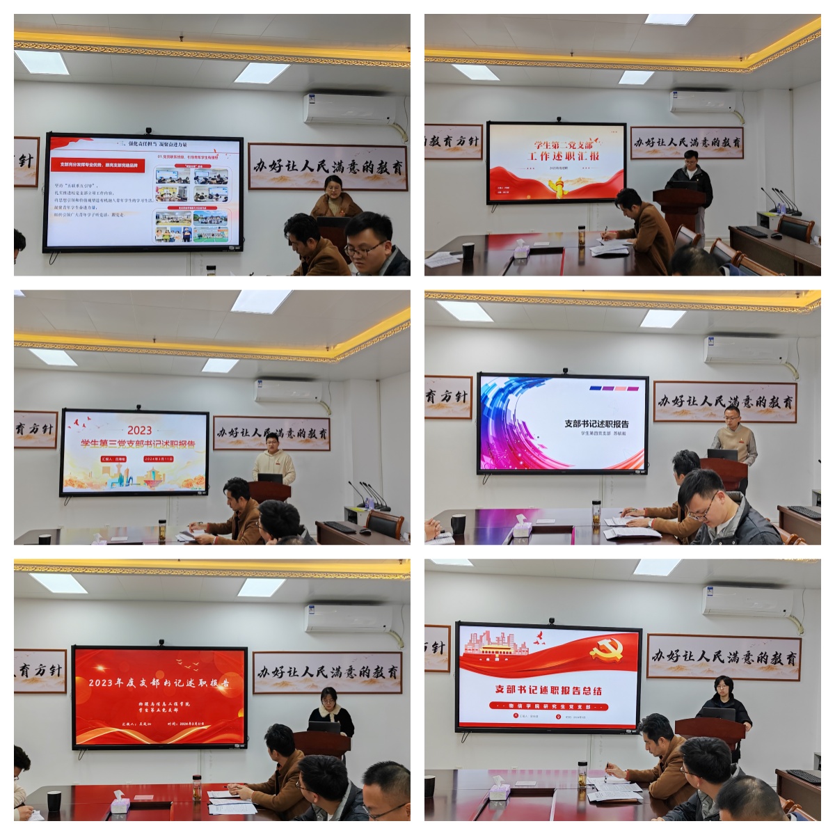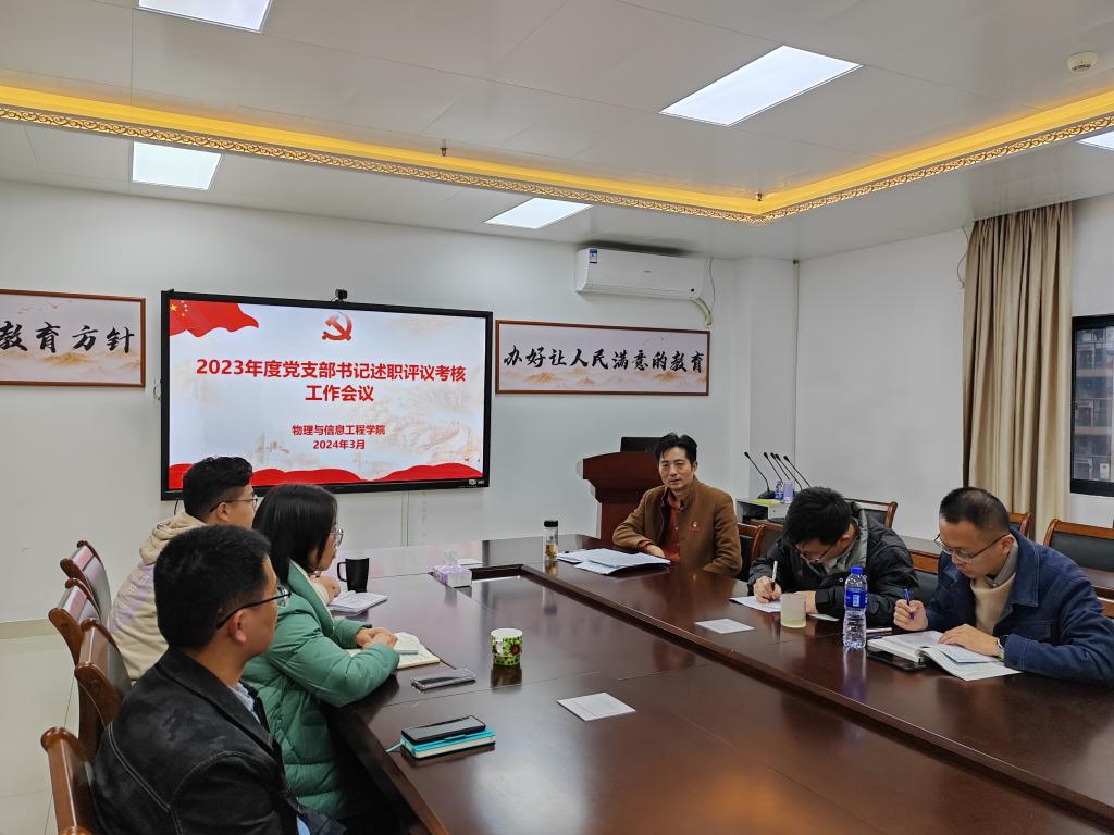 在科技楼北907会议室召开2023年度党支部书记抓基层党建工作述职评议会,学院党委书记杨红和、党委副书记陈丽新、各党支部书记参加本次会议。