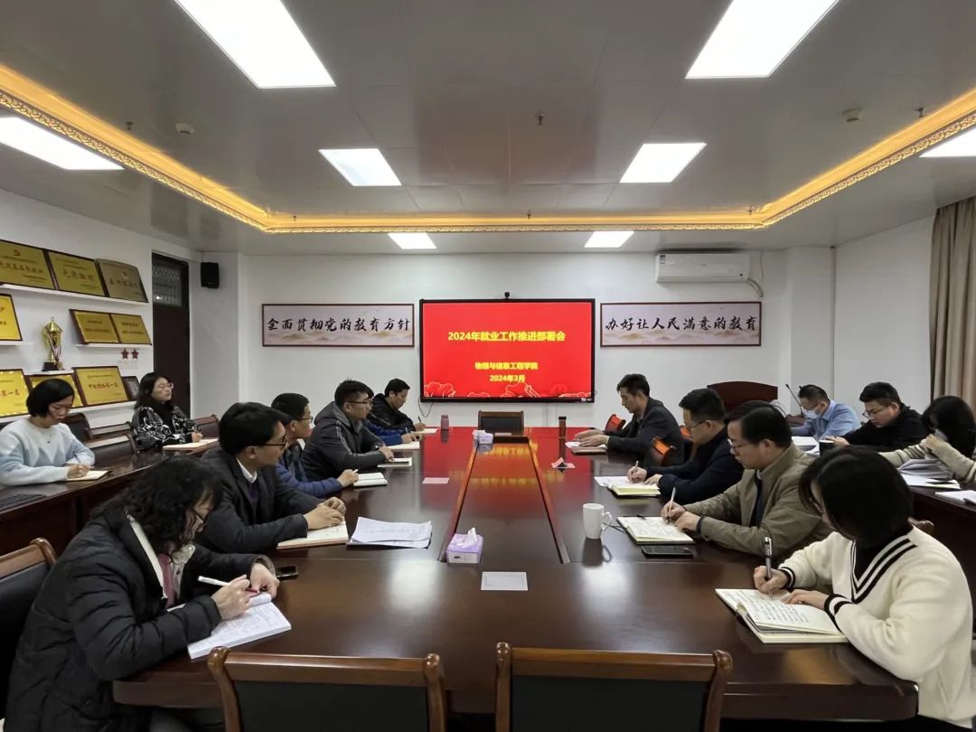 在科技楼北907召开2024年就业工作部署会,学院党政领导班子、党委委员、科级干部、各党支部书记及全体辅导员参加会议。