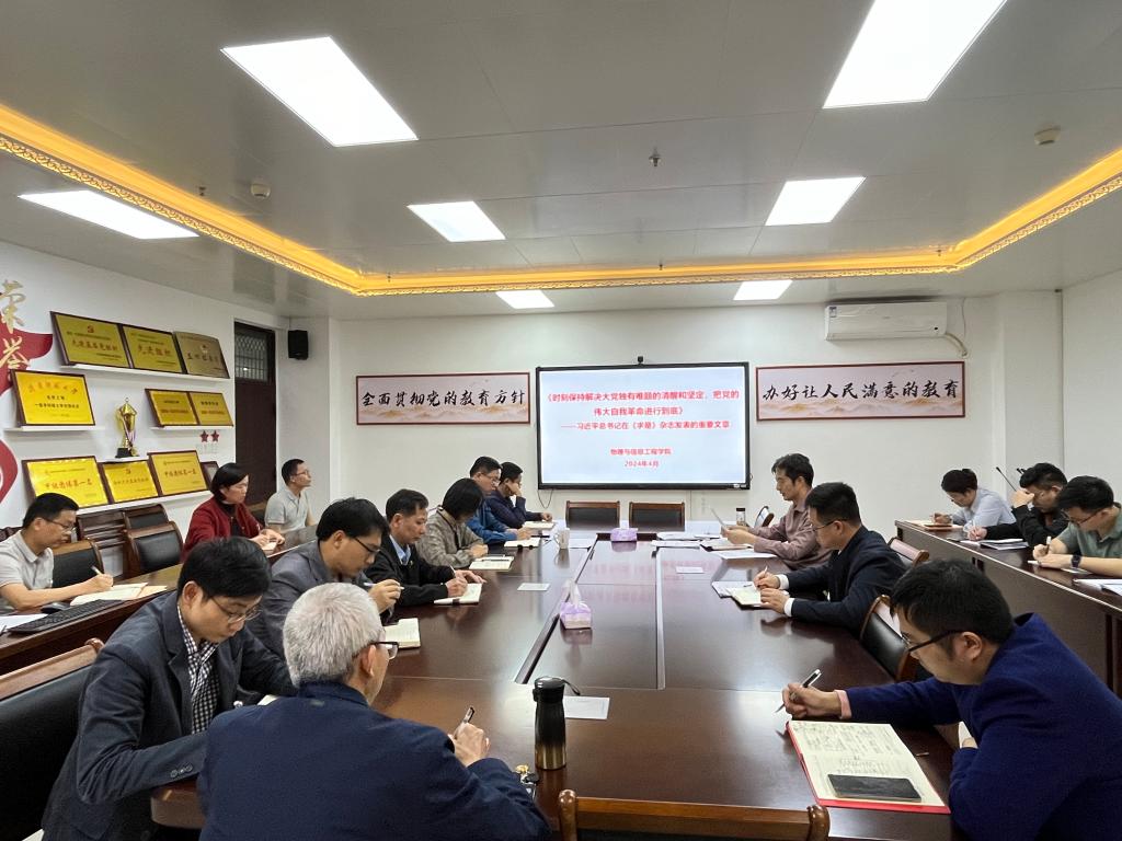 党委在科技楼北907召开党委理论学习中心组(扩大)学习会,传达学习习近平总书记在《求是》杂志发表的重要理论文章《时刻保持解决大党独有难题的清醒和坚定,把党的伟大自我革命进行到底》、习近平复信北京交通大学肯尼亚留学生及校友代表、习近平考察湖南第一师范学院重要讲话精神。学院党政领导、党委委员、院长助理、科级干部、各支部书记、系主任和辅导员老师等参加会议。