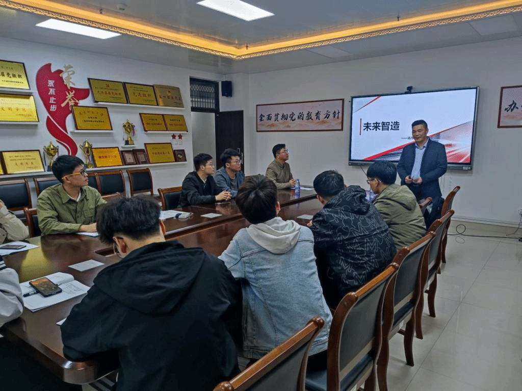 汤茂平副总经理从以下几部分进行了分享:首先讲解了工业的发展历史,随后引申到智能制造,详细阐述了智能制造的概念、范畴、物理场景、系统蓝图和拓扑结构,讲到现代工厂是如何利用智能制造进行生产技术变革,从而提高生产效率,降低生产成本;紧接着介绍了实现智能制造的四大关键技术——精益生产、自动化技术、控制技术、智能系统;最后,在发展智能制造的未来趋势中提到,智能制造通过自动化、信息化等技术手段,会逐步解放人的体力和脑力、通过信息共享实现过程协同和通过组织合作打造社会化生态等等。报告结束后,在场师生就相关问题进行了提问交流。
