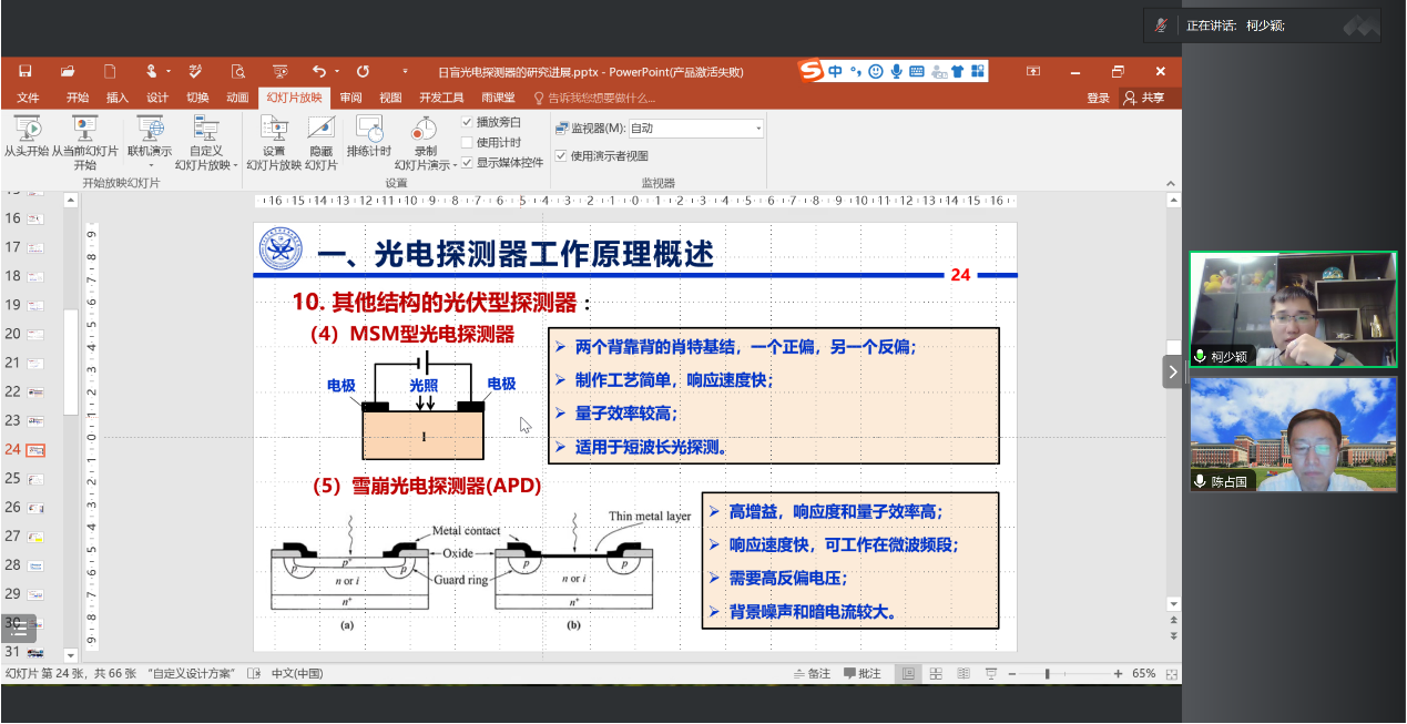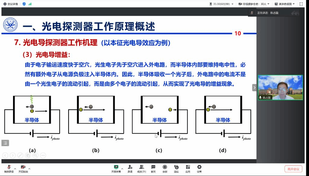 师生开展主题为《日盲光电探测器的研究进展》的学术讲座。讲座于腾讯会议进行,由光电子材料与器件集成实验室负责人柯少颖教授主持。