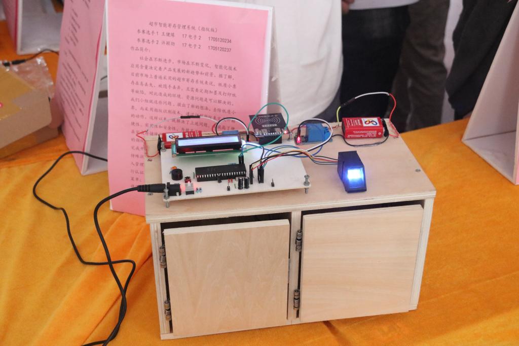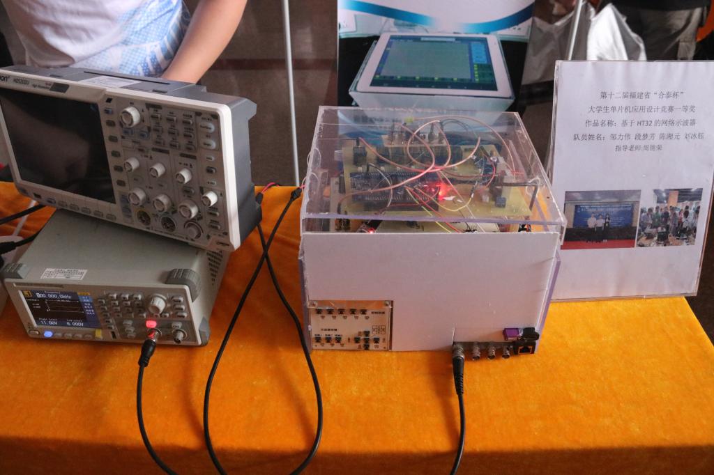 电子设计作品展区作为大观园的招牌活动,无疑是人气最为火爆的区域。此次大观园共展出电子设计作品47件,从娱乐电子作品到实用电子作品,不乏创新智慧,让大家大饱眼福。其中最引人瞩目的是第十二届福建省“合泰杯”单片机应用设计竞赛一等奖作品“基于HT32的网络示波器”,它克服了传统数字示波器的体积大、成本高和无法远程观测故障信号等缺陷,并增加了万用表等功能,拓展了示波器的使用面。除了被琳琅满目的科技作品吸睛,在该展区举行的“2019校电子设计大赛决赛”也吸引了不少看客的驻足谈论。经过初赛、复赛的激烈角逐,优秀的作品在这里集结。“基于树莓派Python环境和STM32开发板的人脸识别门禁系统”,通过摄像头采集图像和网络算法,实现电门的开启,让人眼前一亮,吸引了许多人的观赏与试验;“超市智能寄存管理系统”采用指纹识别技术完成开箱动作,既提高了便捷性与安全性,又减少了传统纸质小票的使用,减少了环境污染。绿色低碳的设计,得到了大家的肯定称赞;“基于STM32的石头剪子布机械手”,具备陪玩的功能,深得人心……一件件作品各具千秋,大家细致观看,细细研究,听设计者们介绍、听评委老师点评,互相学习,交流经验,不亦乐乎。
