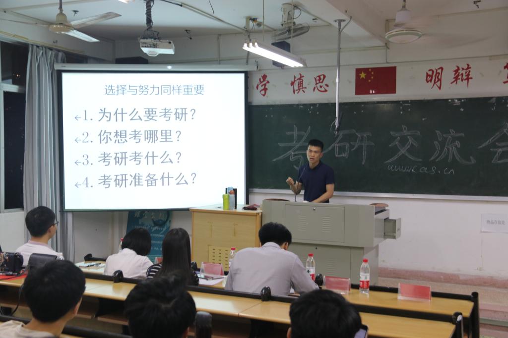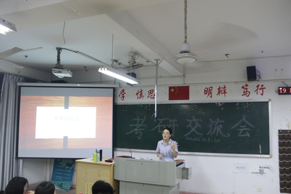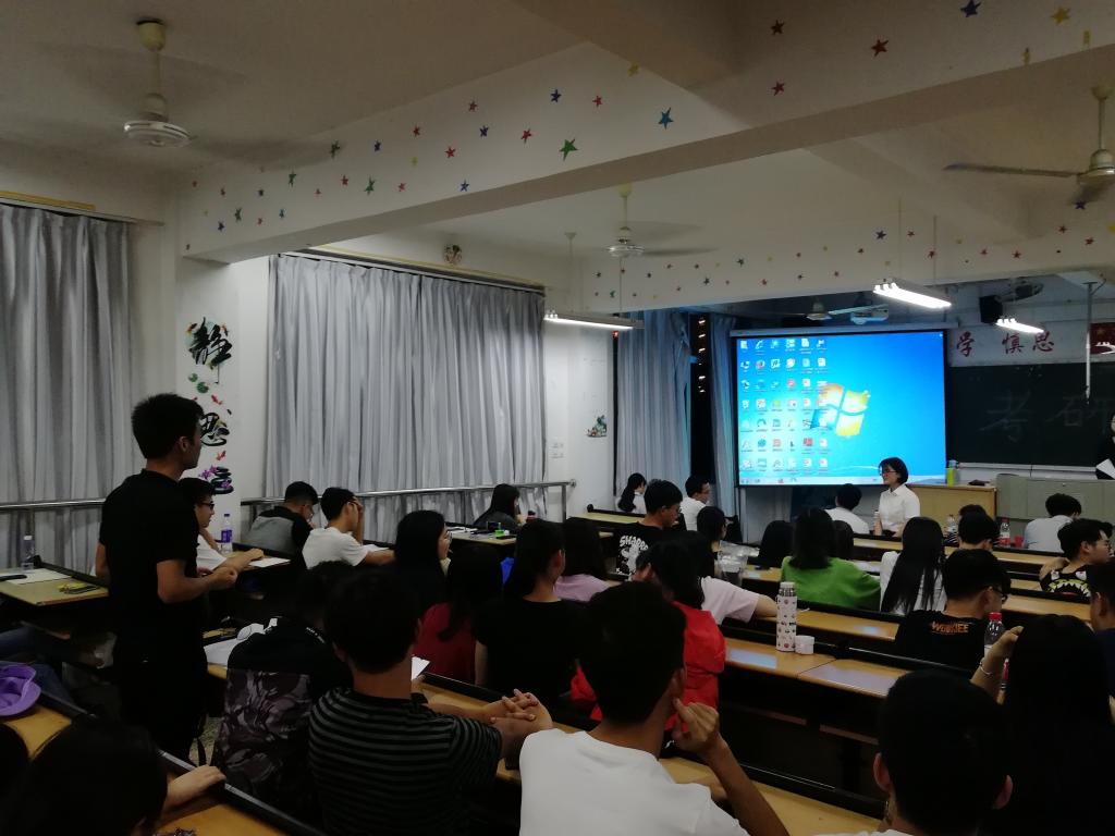 2019年的就业、考研情况做了简要介绍,她提醒同学们应该根据自身的特点,正确对待考研和就业,并对考研志愿报考情况进行了指导。考研成功的学长学姐们更是结合自身的亲身经历,分别从找准自我定位,院校选择,考研准备时间,专业课复习技巧等方面进行了介绍,并向大家推荐了一些考研资料,希望同学们少走些弯路,找到适合自己的复习方法。最后,陈颖频老师向大家介绍了他独特的“独孤九剑式”考研宝典,勉励同学们正确对待考研和就业,及早规划、刻苦练功、追求卓越、笑傲江湖!