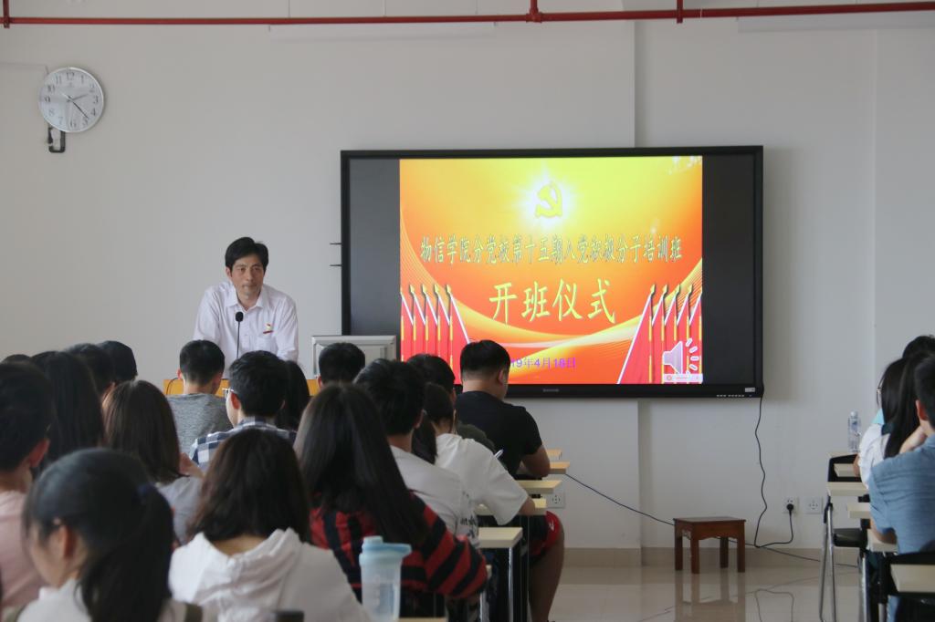 4月18日下午,物信学院在科技楼南区809举办第十五期入党积极分子培训班开班仪式,院党委主持工作副书记、分党校校长杨红和出席开班式并发表了重要讲话。开班仪式由院党委组织员李常老师主持,出席开班仪式的还有辅导员张信练老师、李小荟老师、李主泉老师、黎淑晶老师以及全体培训学员。