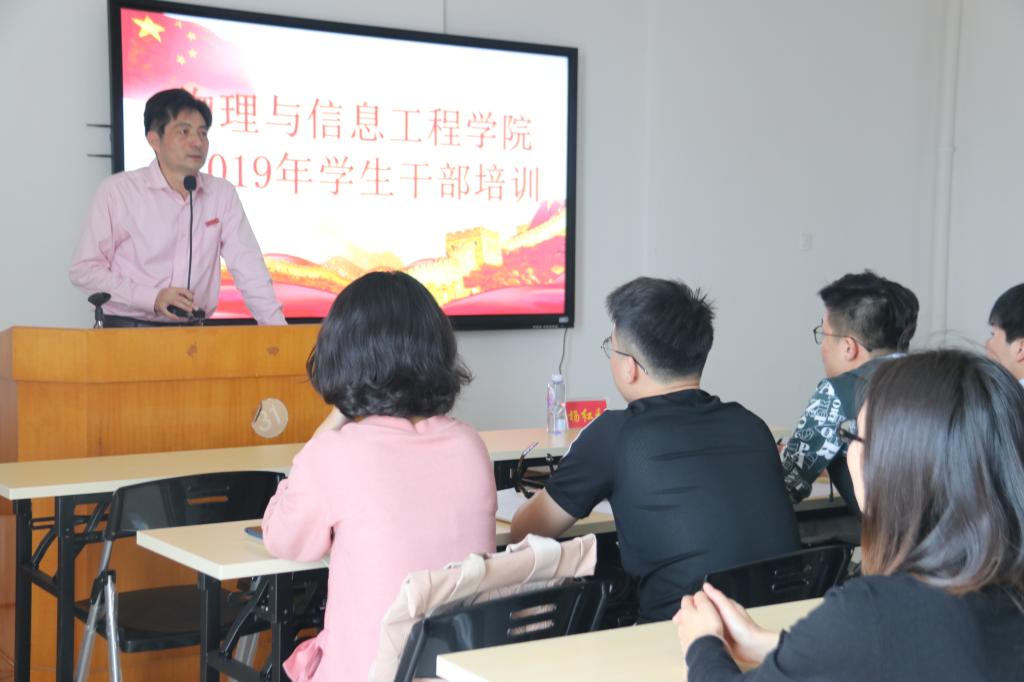 会上,杨红和强调学生干部们要加强理论学习,要肯下功夫花时间,联系实际、勤于思考,认真学习习近平新时代中国特色社会主义思想和十九大精神,在常学常新中加强理论修养,在真学真信中坚定理想信念。在学习中,提高学习能力、应对能力、决策能力、组织协调、管理创新和团体作战能力等。同时也向学生干部们提出了四点要求。第一,作为学生干部要明确自身定位,首要是“学生”,要在学风建设上充分发挥学生干部的先锋表率作用。第二,作为学生“干部”,要履行学生“干部”使命。要以“学习”为中心,在科研实践、创新创业等各项活动的组织开展中,为学校班级做出贡献。第三,学生干部要端正思想,有责任感,乐于奉献,正确处理学习与工作的关系,全面提高自身综合素质。并对学生干部的政治思想素质、业务素质,心理素质,决策能力、组织能力、创新能力、交往能力及团队作战能力等进行了详细阐述。第四,严格遵守培训纪律,做好考勤。用行动践行思想,用思想指导行动,树立为同学服务的理念,为学院发展作出贡献。最后,杨红和副书记引用习近平总书记的讲话,对大家寄予厚望,希望同学们成为有使命担当的时代新人。