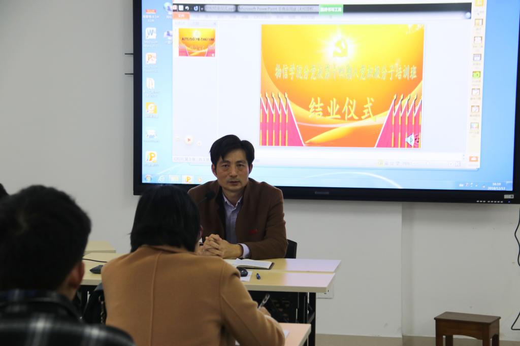 接着,杨红和老师发表了重要讲话:他首先对本期顺利结业的入党积极分子表示了祝贺,强调广大学员要认真学习习近平总书记在北京大学师生座谈会上对青年所提出的爱国、励志、求真、力行四点希望。接着,他对学员们提出了三点要求:第一,希望各位学员继续加强理论学习,强化党章意识,坚定政治信念,牢固树立“四种意识”,落实 “两个维护”;第二,希望各位学员能进一步端正入党动机,主动接受党组织的教育和考验,用习近平新时代中国特色社会主义思想武装自己的头脑;第三,希望各位学员通过本期培训,能更好地发挥先锋模范作用,以实际行动争取早日入党,成为青年学生中的思想先锋、工作楷模、生活表率,为物信学院的发展、新闽师的建设添砖加瓦。最后,李常老师宣布物信学院第十四期入党积极分子培训班顺利结业。